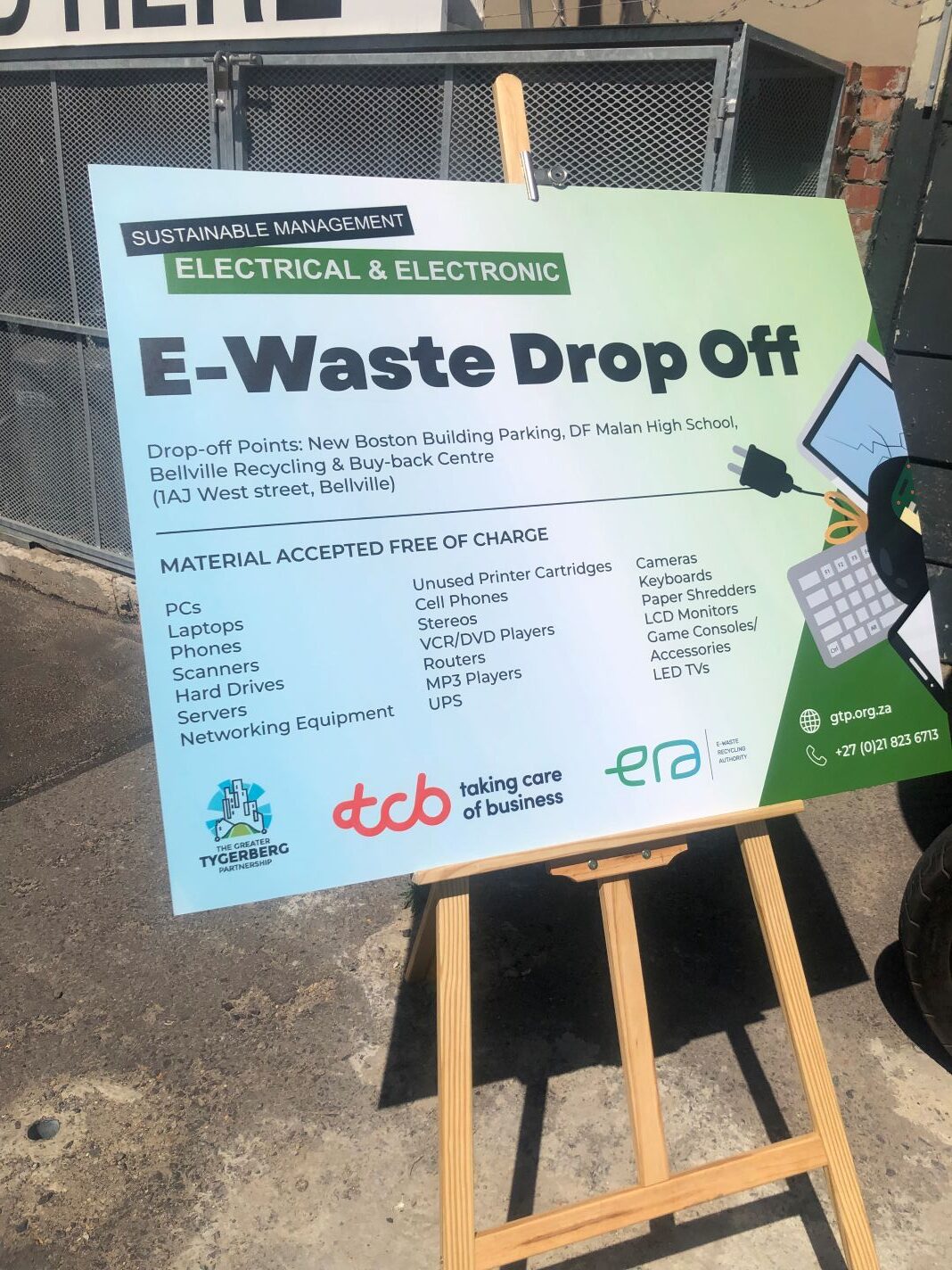 The e-waste bins can be found at the SPAR in the New Boston Centre (a revitalised 10-storey mixed-use building) public parking lot at 85 Voortrekker Street, DF Malan High School, and the Bellville GTP Recycling & Buy-Back Centre at 1 AJ West Street, Bellville.