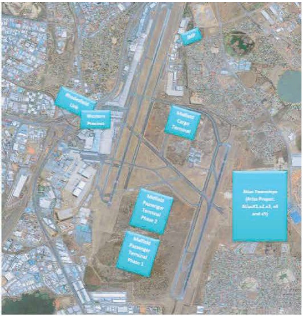 The Western Precinct Development at OR Tambo International Airport is a 8.5-hectare site with 180 000m² of bulk for a mixed-use development to be located on the northwestern precinct of ORTIA. The development will incorporate various phases, comprising: