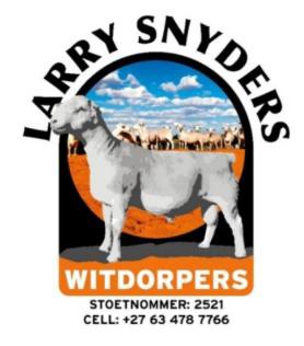 Proven genetics of a stud that the owner has bred himself. Superior in terms of reproduction and sustainability of form and function when relocated. The two best white Dorpers in the world has been bred by the owner – 2022 World Dorper Show. Reserve White Dorper ewe was presented to Larry Snyders – 2024 World Dorper Show.