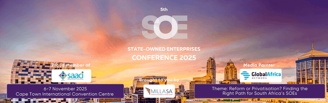 MillaSA is pleased to invite you to attend the 5th State-Owned Enterprises (SOE) Conference, taking place from 6–7 November 2025 at the Cape Town International Convention Centre (CTICC), Cape Town, South Africa.