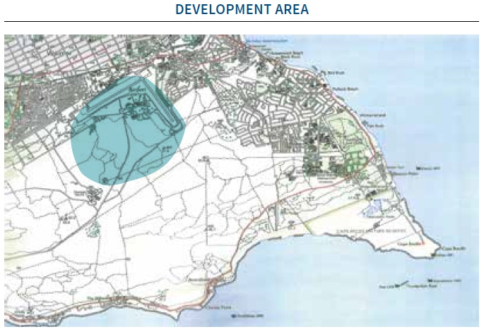 The site, which is uninhabited/unused, has no significant gradients affecting runway construction. It is further in close proximity to the developed beachfront, the undeveloped coastal areas, and Nelson Mandela University. The 2Africa intercontinental undersea cable is close to the site.